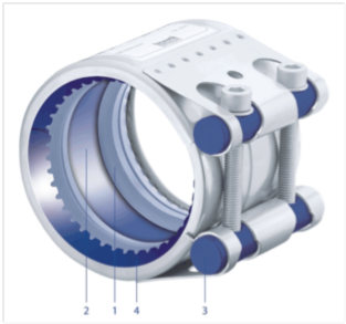 The anchoring ring with conically stamped teeth indents into the pipe surface and provides safe and strong axial restraint. Owing to the special design the coupling is able to withstand even high vibration loads.